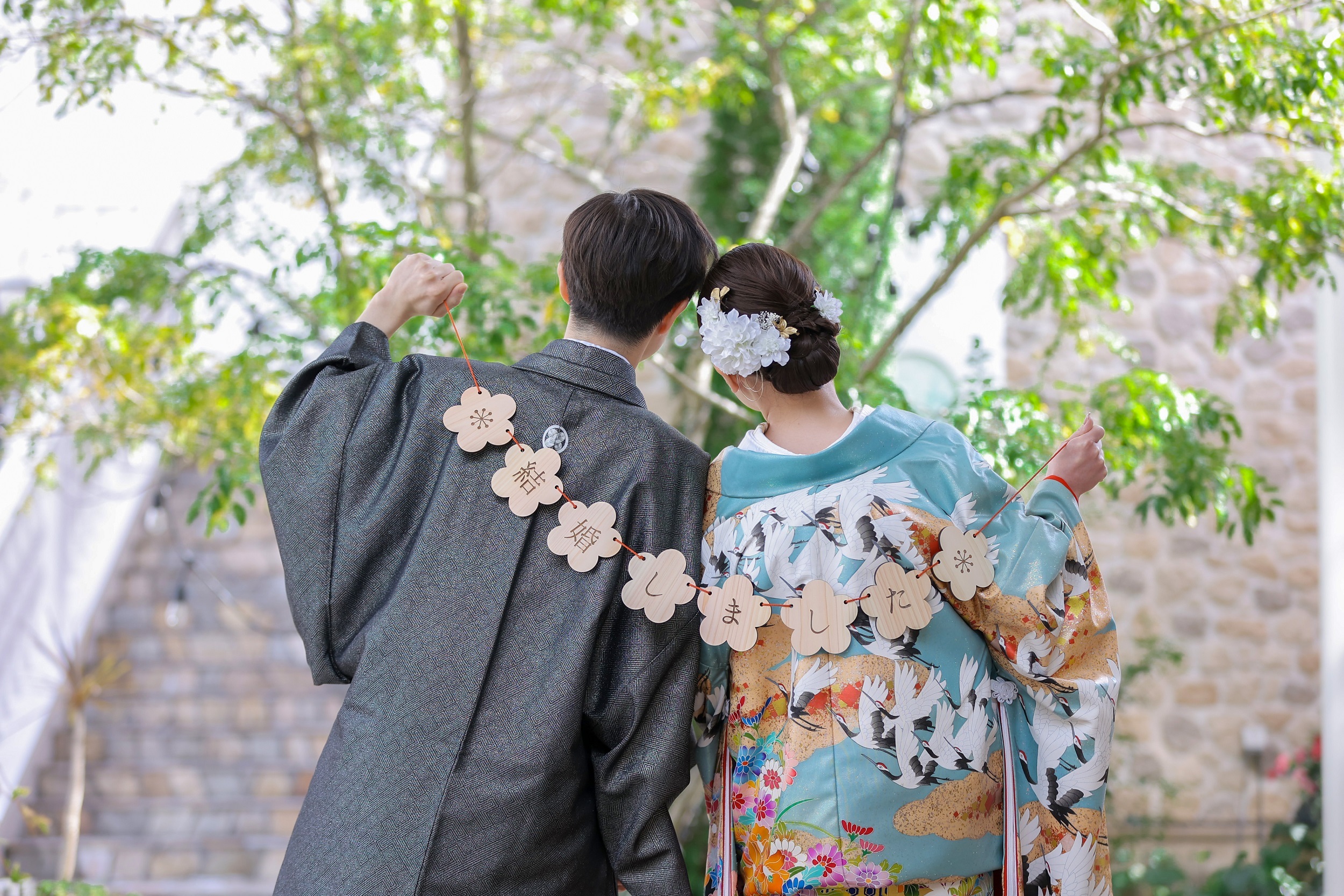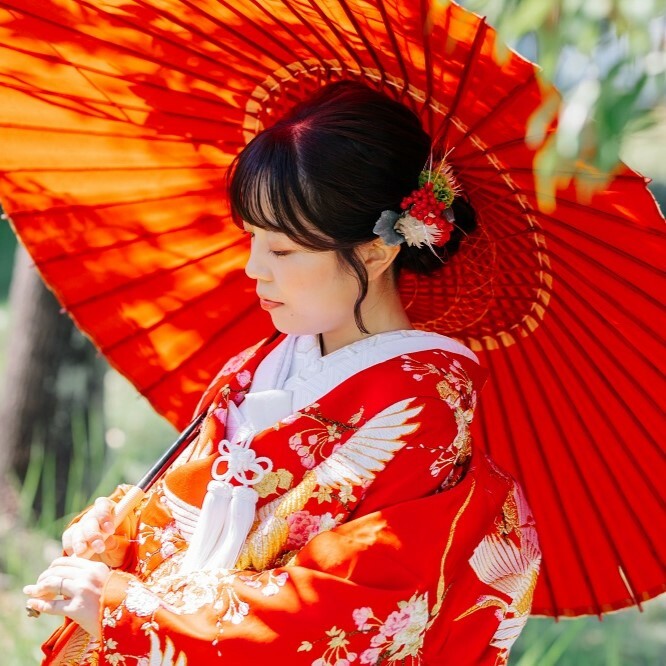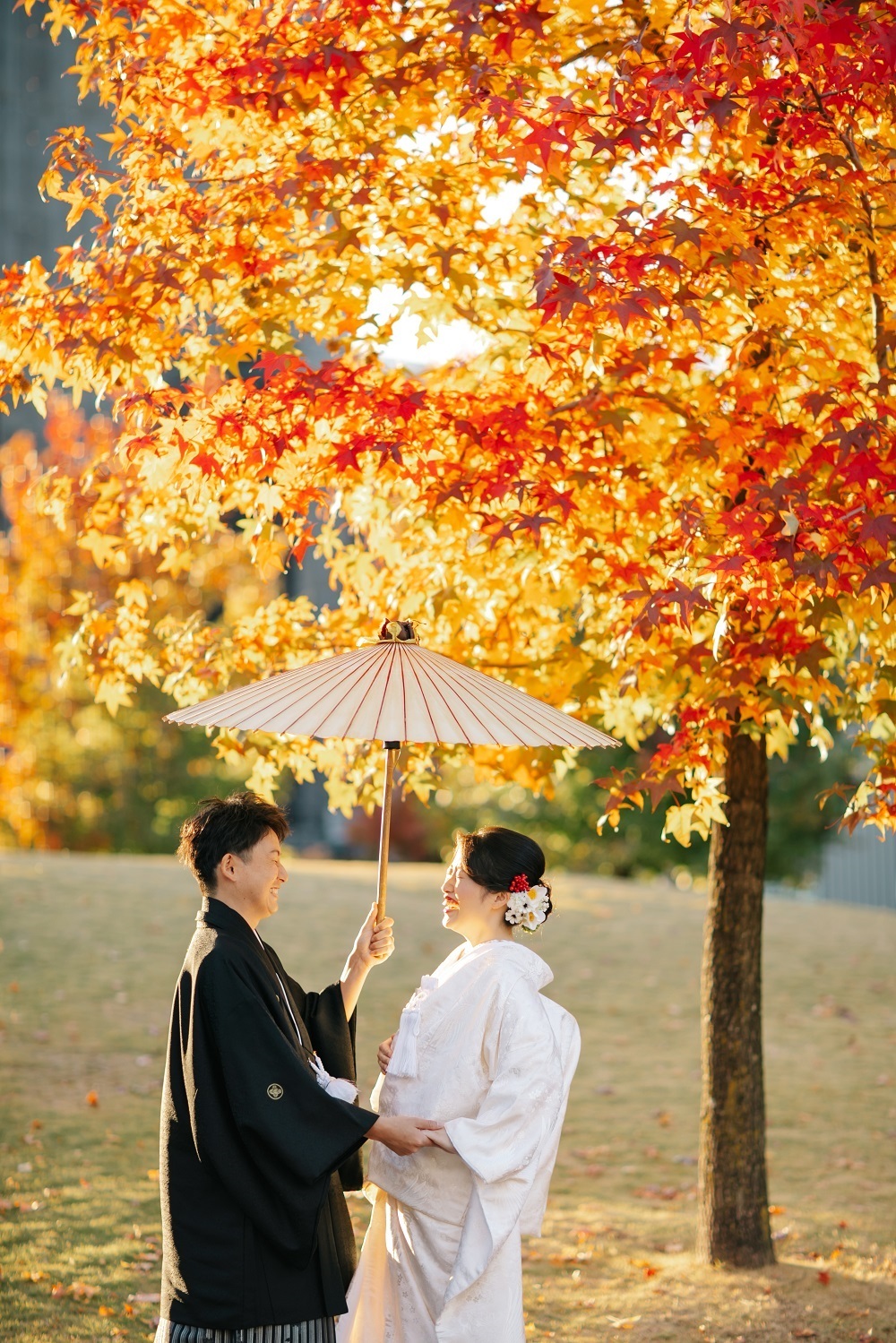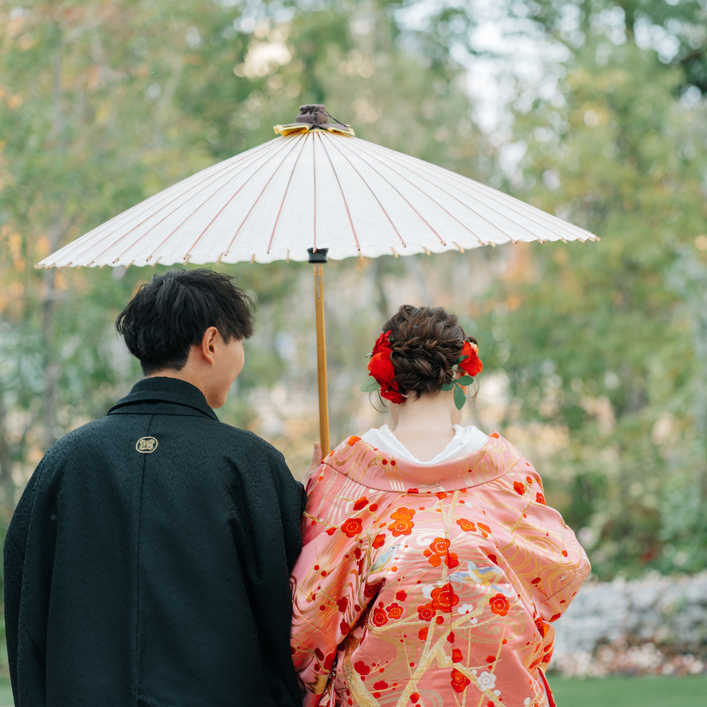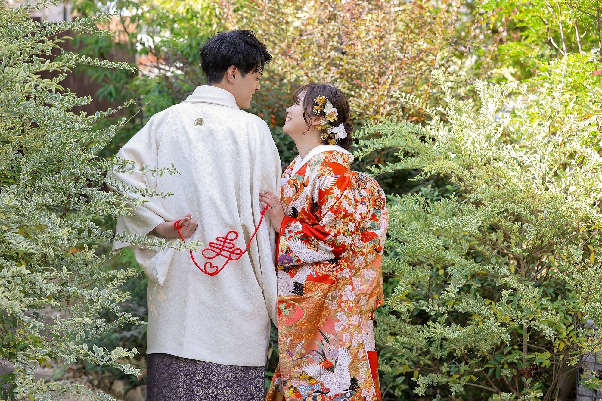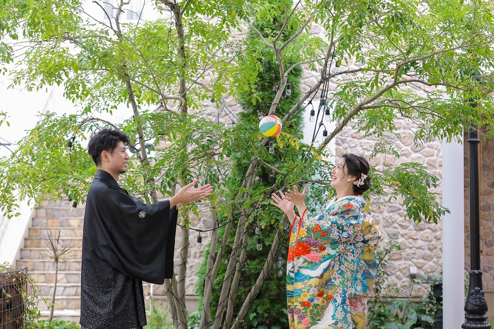 日本庭園での和装フォト 緑あふれる公園でのドレスフォトなどご希望に合わせたロケーションフォト