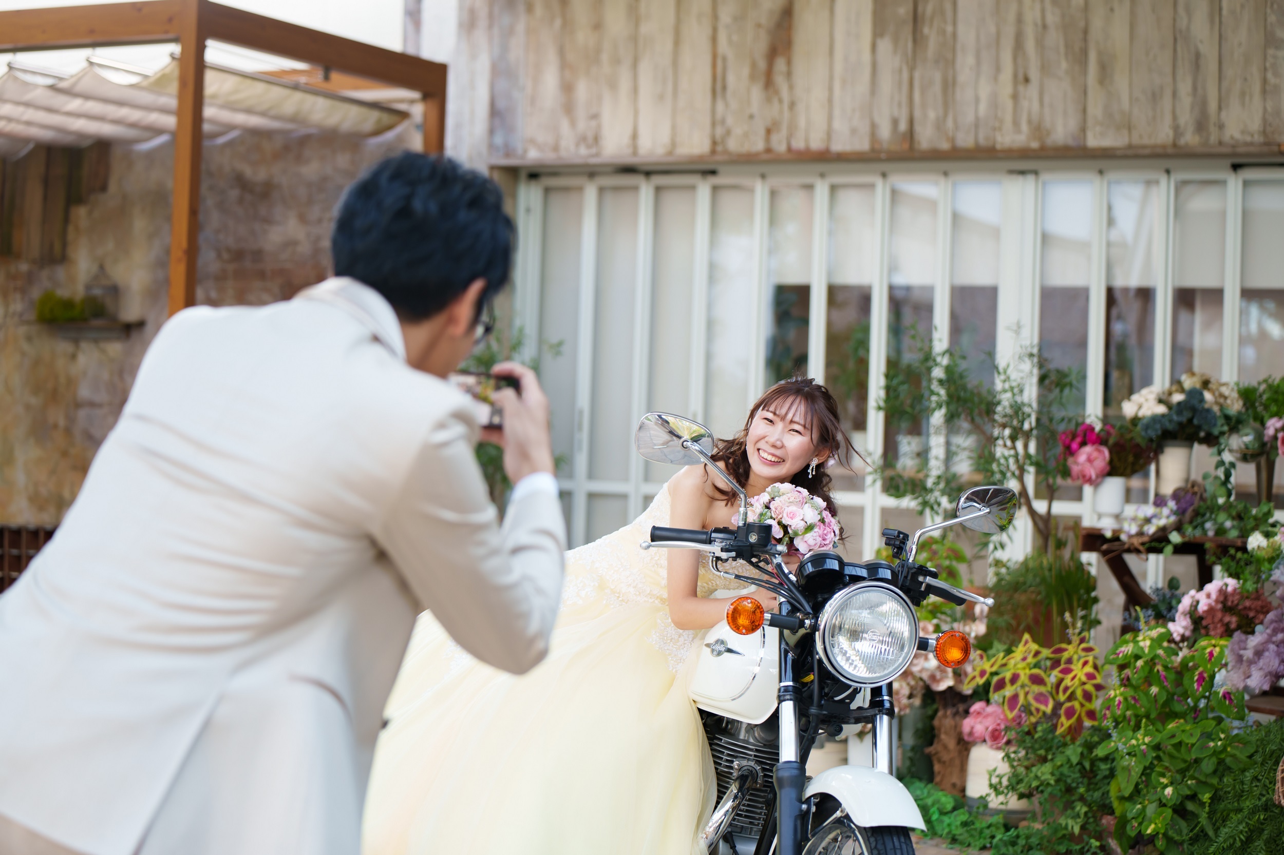 スタジオ撮影でも開放感のあるガーデン撮影ができる屋根付きガーデンはどんな天候でも撮影可能