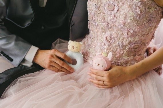 産まれてくるお子さんのためにご用意されたアイテムを使ってマタニティフォト。 ご家族での記念にピッタリですね(^^♪