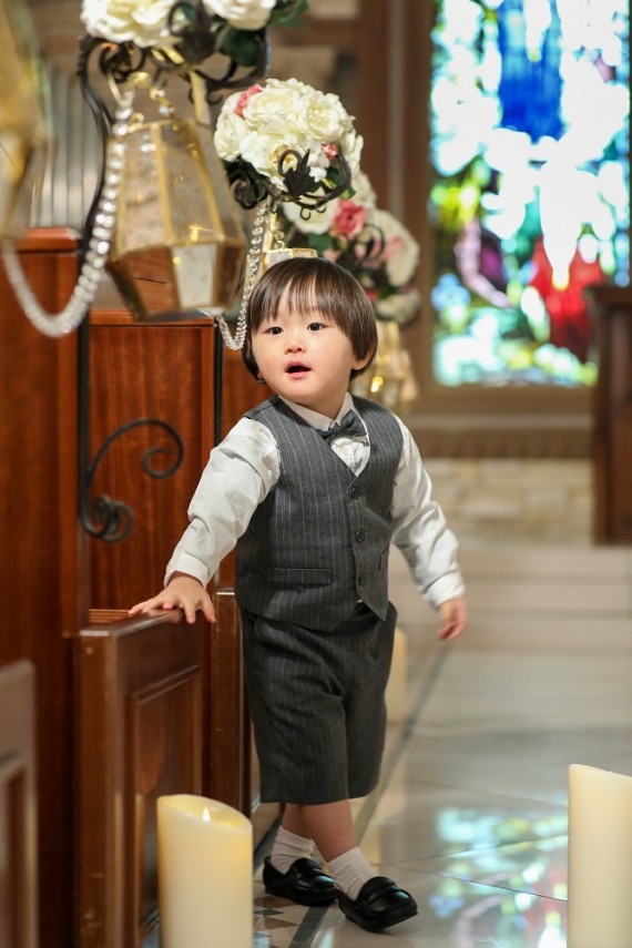 大きなステンドグラスの前や、緑いっぱいのガーデンなど、おもちゃやシャボン玉などのアイテムと一緒に撮影するのも素敵です♪