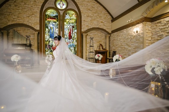 チャペル撮影で希望される方が多いのが、こちらのロングベールショット!