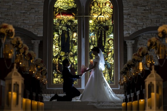 フルールのチャペルは、どんな天候でもステンドグラスが暗くならないのが魅力のひとつです。