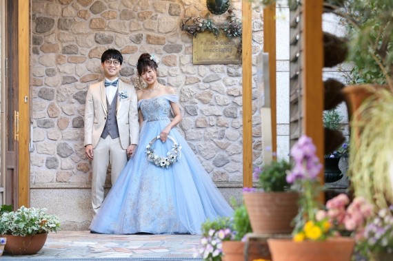 また、カジュアルなご新郎様の蝶ネクタイ姿も魅力のひとつ!ご新婦様とのお色味の相性バッチリ!!