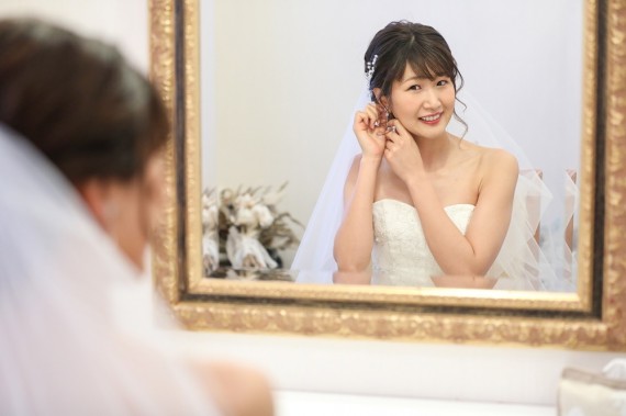 リップシーンやアクセサリーを身につけるシーンなど、素敵な花嫁支度を鏡越しに撮影することもできます♪