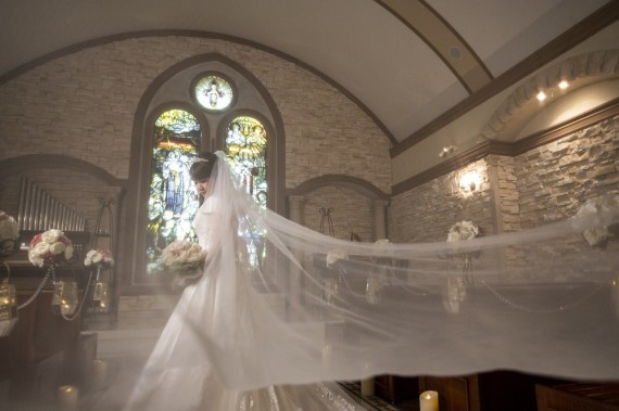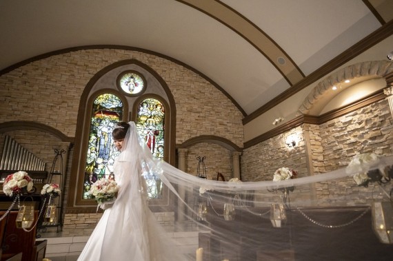 ふわっと広がるロングベールは、花嫁様の中でも特に人気です。ご新婦様のソロショットもフルールならこんなに素敵に残すことができますよ!