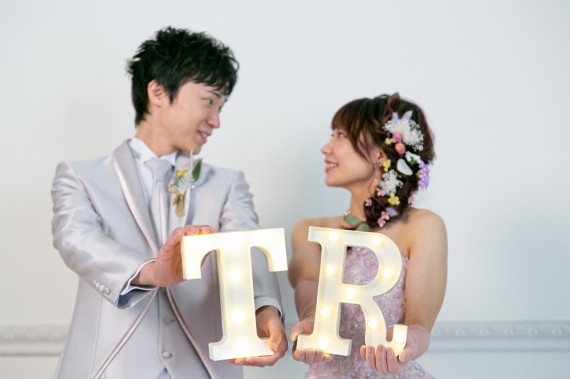 本日は撮影アイテムのご紹介です♪ おふたりが用意されたのは、お名前のイニシャルライト! サイズ感もばっちりで存在感◎ ライトを光らせてオシャレさUPです!
