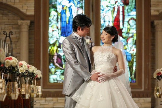 ママだけの真正面ショットに、パパが後ろから包み込むようにハグ。