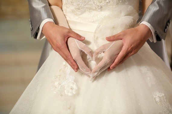 おなかに手を添えているママの手にパパの手をそっと添え可愛くハートマークを作りましょう。