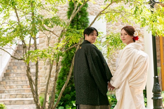 フルールでは、緑豊かなガーデンを使っての和装撮影と館内での撮影が可能なため、今回はガーデンの様子をお届けいたします。