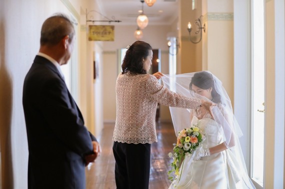 扉が開く前にお母様よりベールダウンをしていただきました。