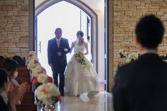 お父様にエスコートされ一歩ずつゆっくりとご新郎様のもとまで進みます。