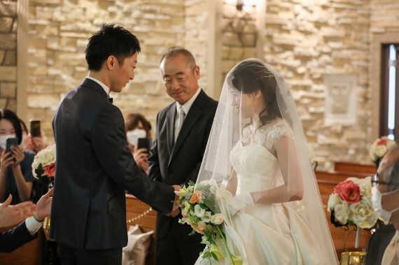 ご新郎様の前まで進むと、お父様より「娘をよろしくな」と