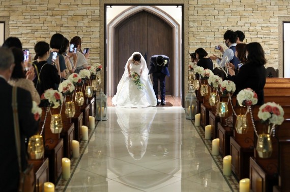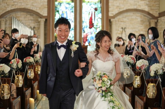 皆様に見守られ、夫婦としての誓いをたてたおふたり。