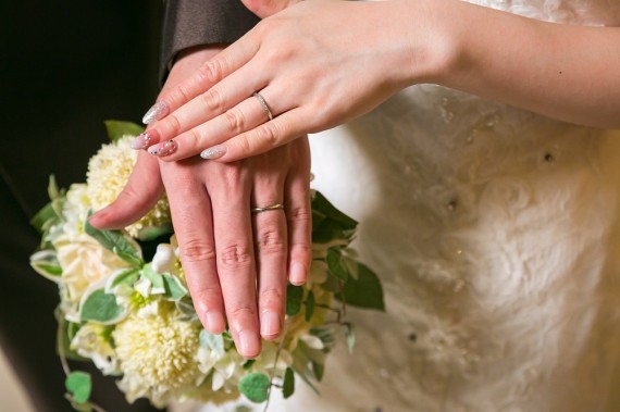 新郎様の手の上に、新婦様がそっと優しく手を添えるのが定番です。
