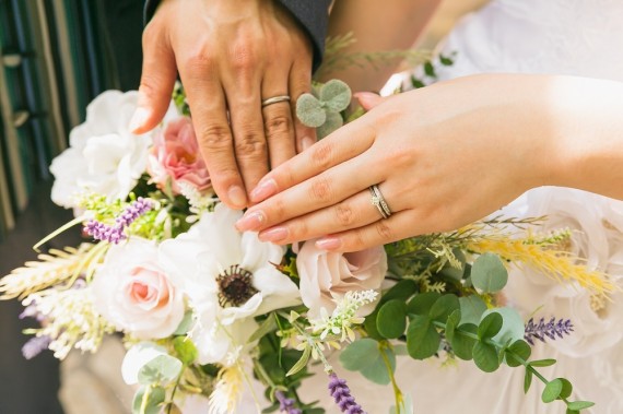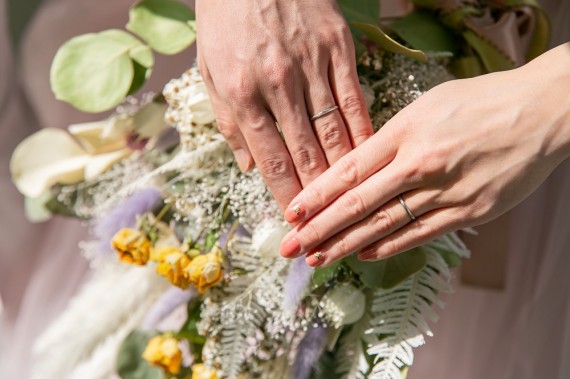 ブライダルリングはもちろん、お気に入りのブーケを映り込ませることができ、華やかな一枚になります♪