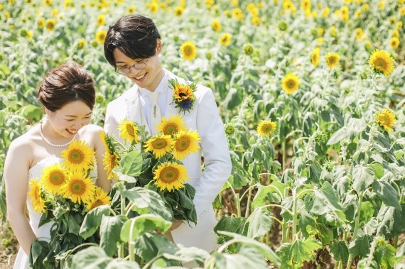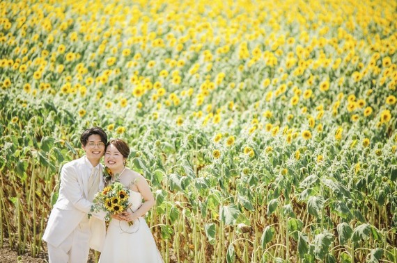 おふたりの背景には14万本のひまわりが咲き誇ります!