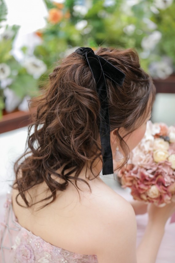 ベロアリボンを使用した甘すぎない大人可愛いヘアアレンジと