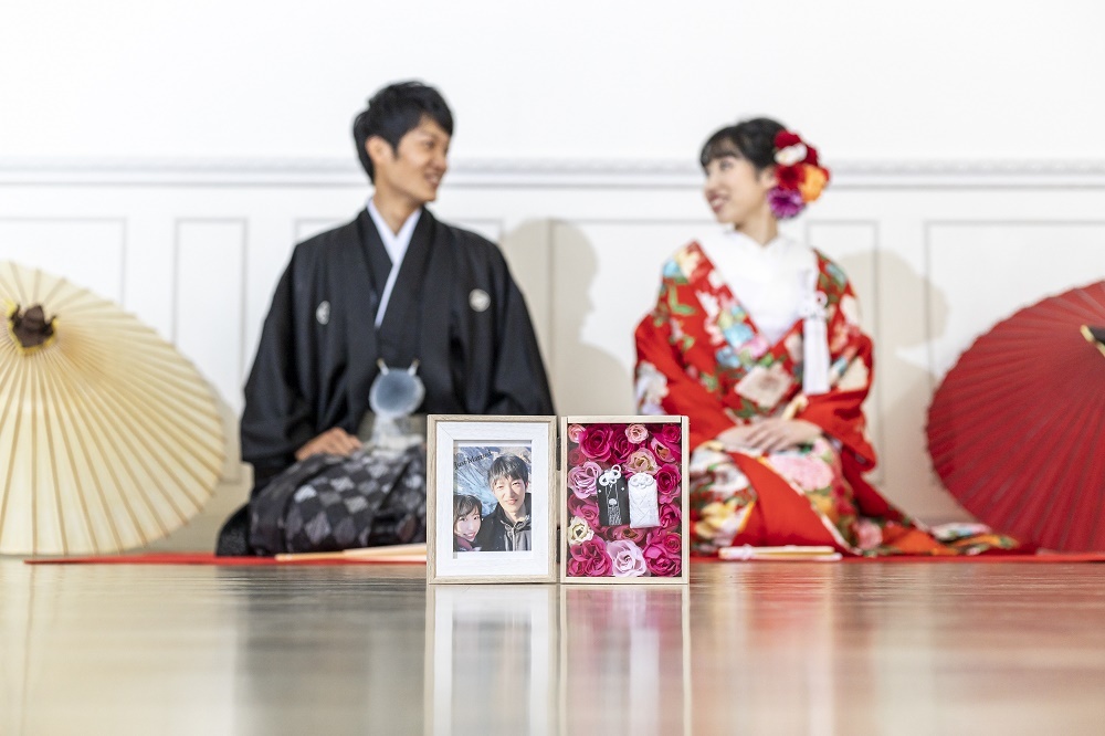 おふたりの結婚のお祝いで夫婦守りと写真たてをプレゼントいただいたようで