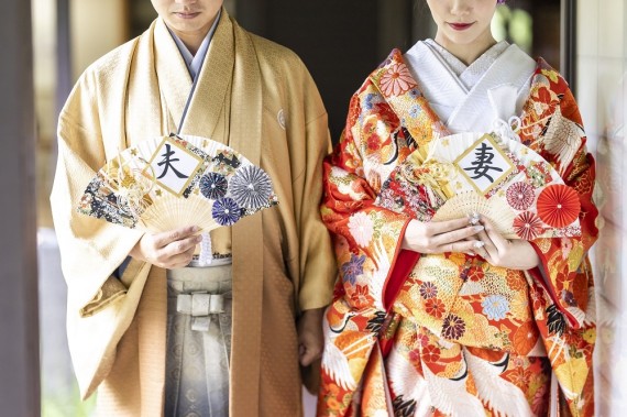 ②夫婦扇子を使って