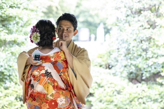 本日は、昨日に続き和装ロケーション、丈山苑での撮影風景をご紹介いたします♪