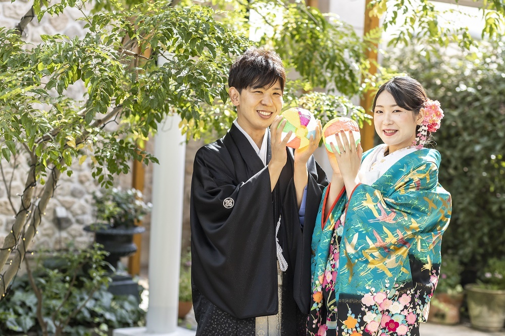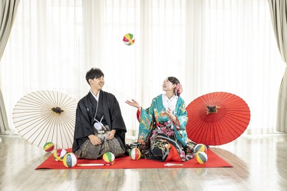 本日は、和装撮影では人気な撮影小物のひとつである紙風船を使ったショットをご紹介いたしますね♪