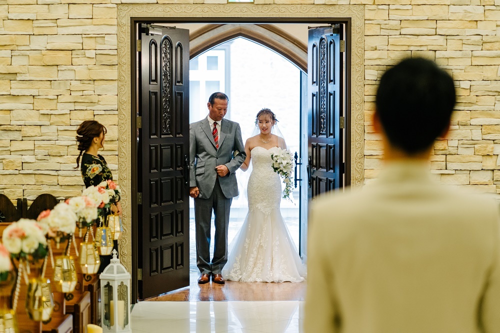 バージンロードを歩くとき、これまでの人生を思い返して、ゆっくり歩きましょう。