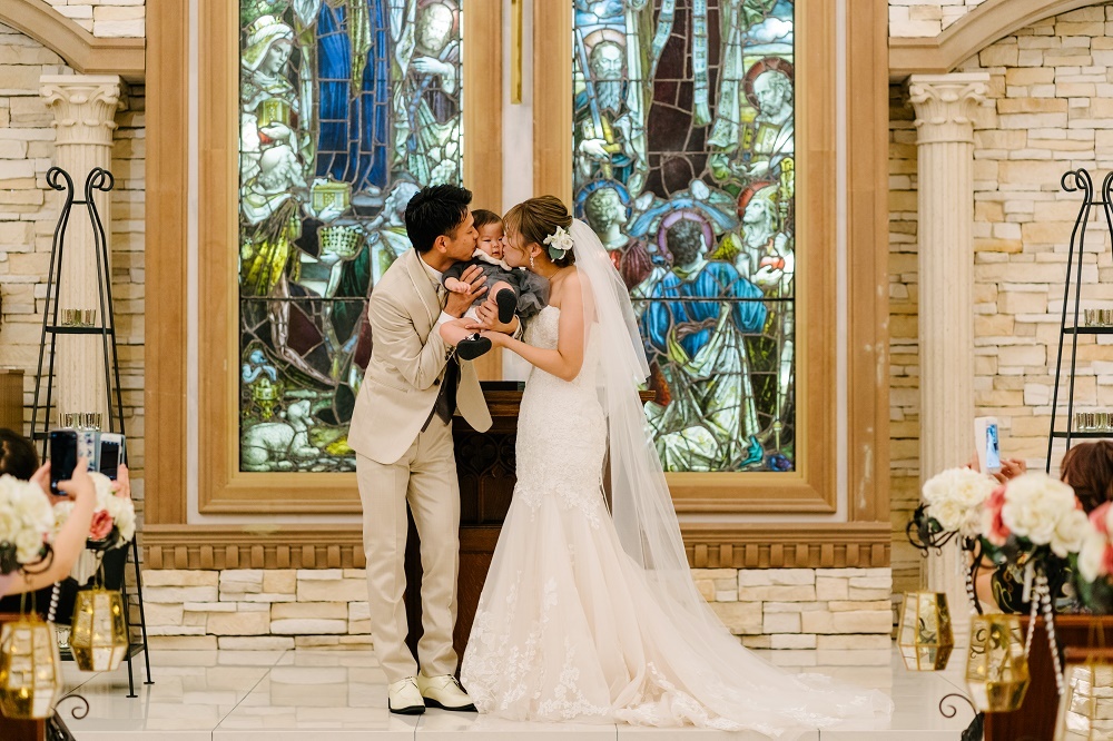 パパママ婚の方には、お子様を両側から抱っこする形でほっぺにチュー♡がオススメ♪