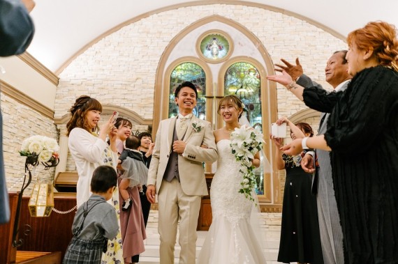 おふたりのご退場シーンは、ご来館のゲストの方にご協力いただき