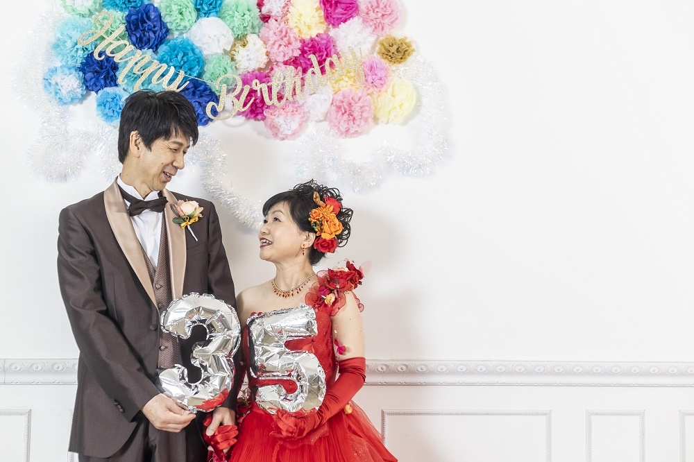 そして、おふたりは今年で結婚35周年!バルーンを持って撮影!