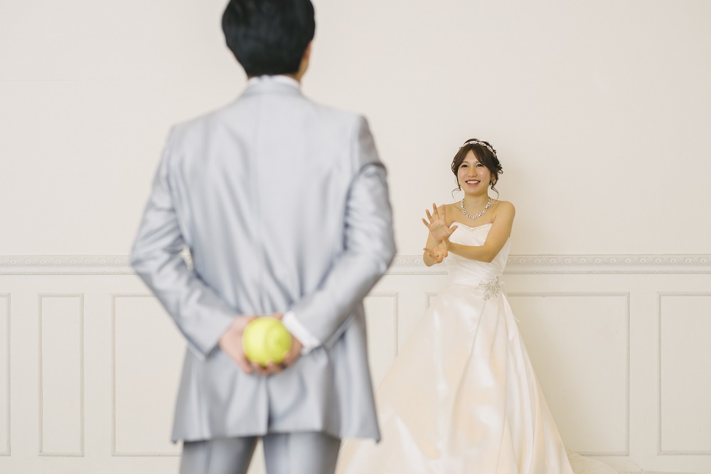 趣味のスポーツやお好きなキャラクターなど、フォトウエディング・フルールでは様々なアイテムを使って撮影をされる方がいらっしゃいます。お持ち込みのご相談も柔軟に対応させていただいてます!