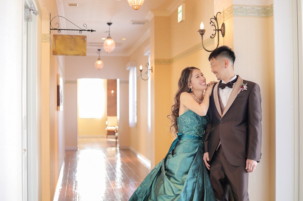 フォトウェディング・フルールでは、結婚式場を使って撮影ができるので館内の様々な場所でお写真を残すことが出来ます。