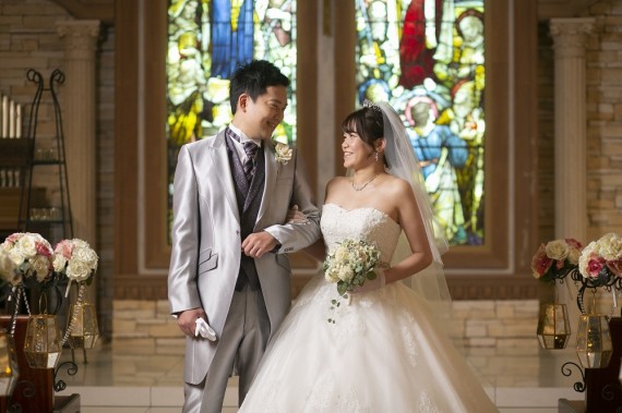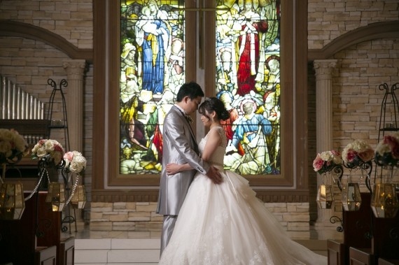 チャペルは自慢のステンドグラスをバックに、様々なポーズで撮影を行うことができます。