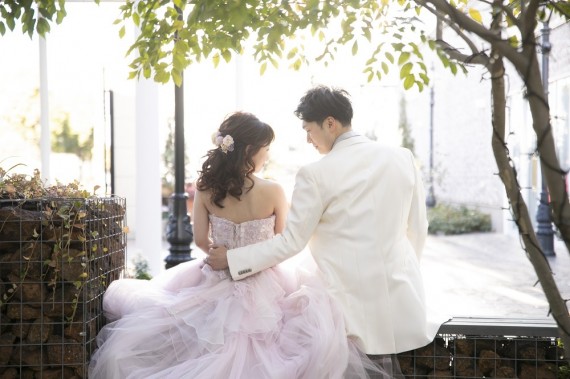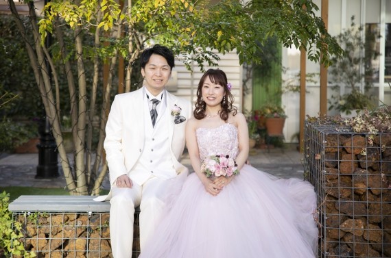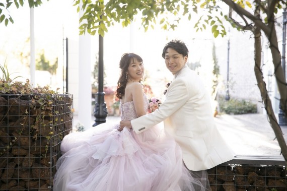 本日は、プライベートガーデンのベンチでの撮影風景をご紹介いたします。