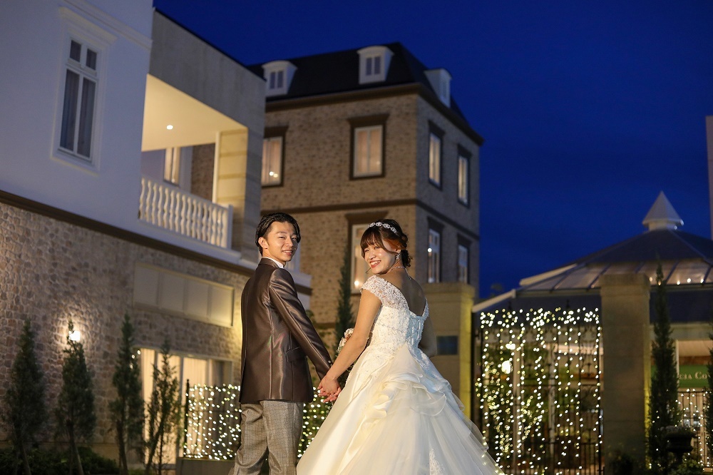 日没後はイルミネーションを輝く中でのロマンチックな撮影