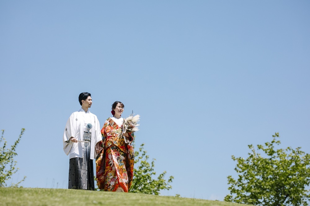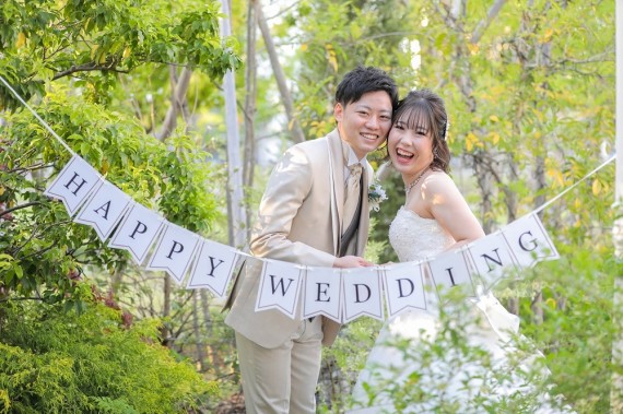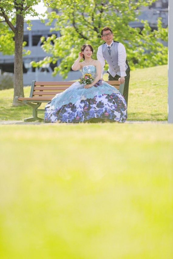 フォトウエディング・フルールでは、スタジオ撮影プランでも、新緑や青空と一緒に春らしい爽やかな撮影を行っていただけます。