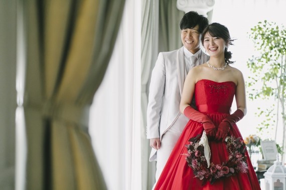 素敵なカラードレスでの、ご新婦様おひとりのポーズも是非取り入れてみてくださいね♡