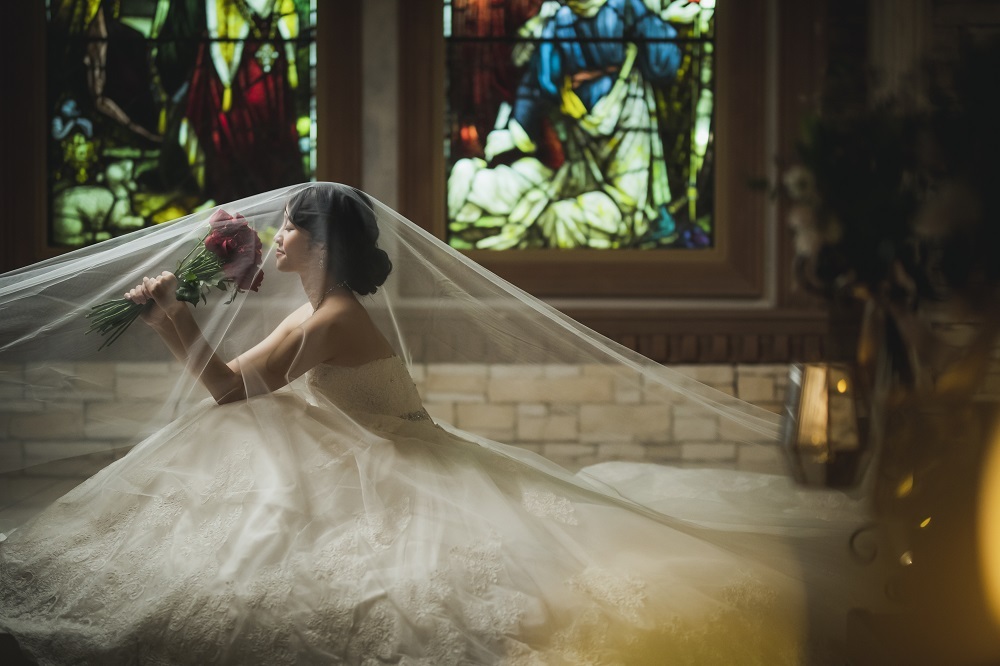 ウェディングドレスでチャペル撮影をされる方にとっても人気なロングベール。