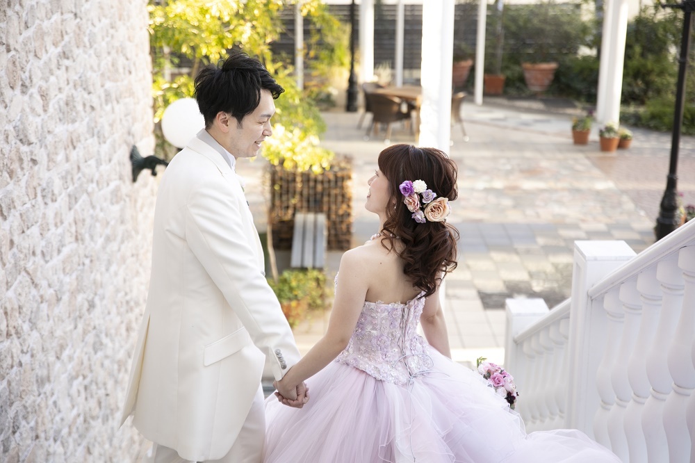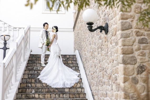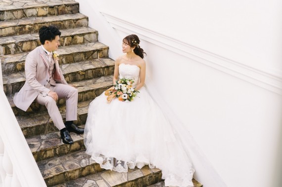 おふたりのアップのお写真も素敵ですが、大きな階段をふんだんに使ってみてはいかがでしょうか?