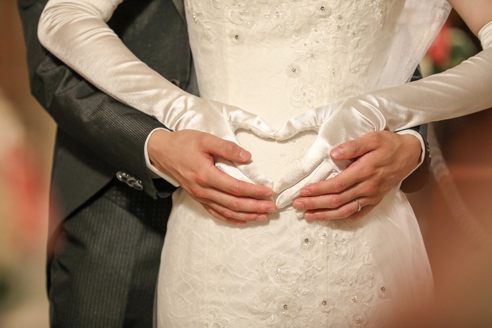 お腹の中の赤ちゃんをおふたりで守っている感じが伝わりますよね♪新婦様の手をハートにするのも可愛くておすすめです!