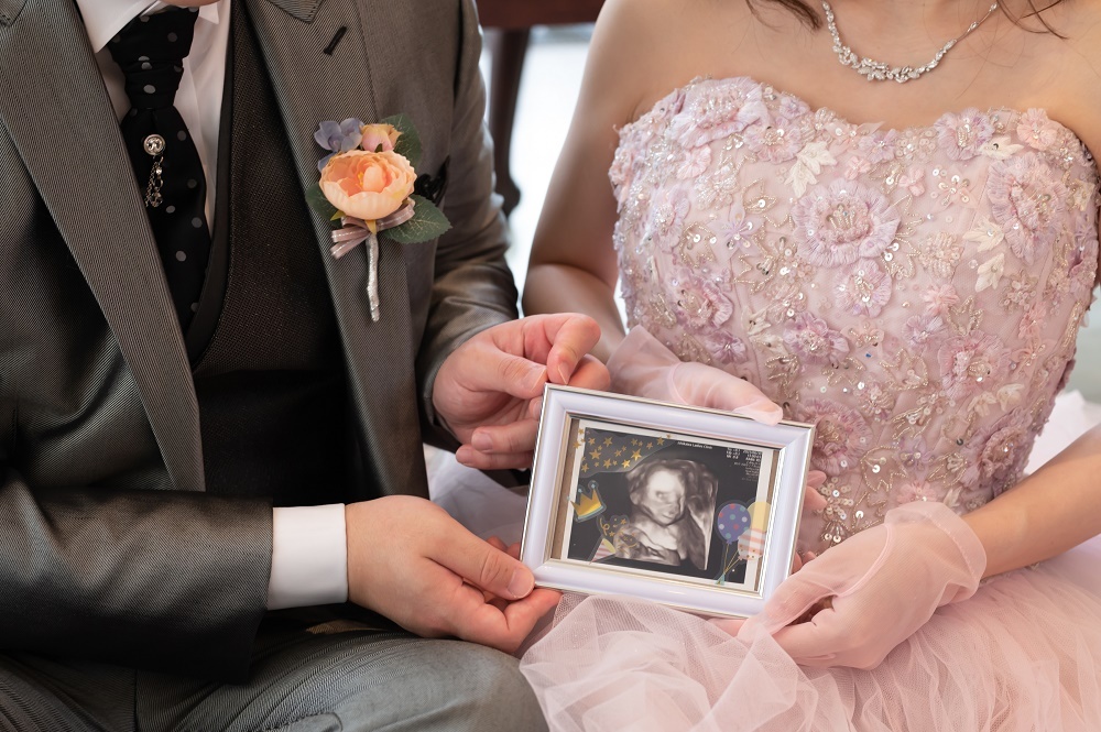 エコー写真と一緒に3人でのフォト♪お子様が産まれてきてから、見返すのがより楽しくなりそうですね。