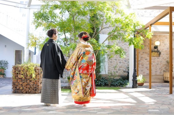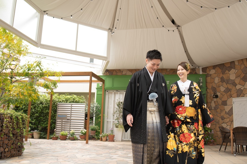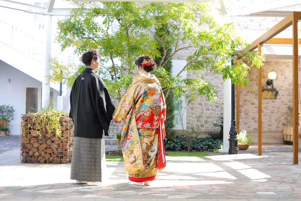 黒×金でゴージャスな色打掛です。大人っぽい雰囲気になりますね。