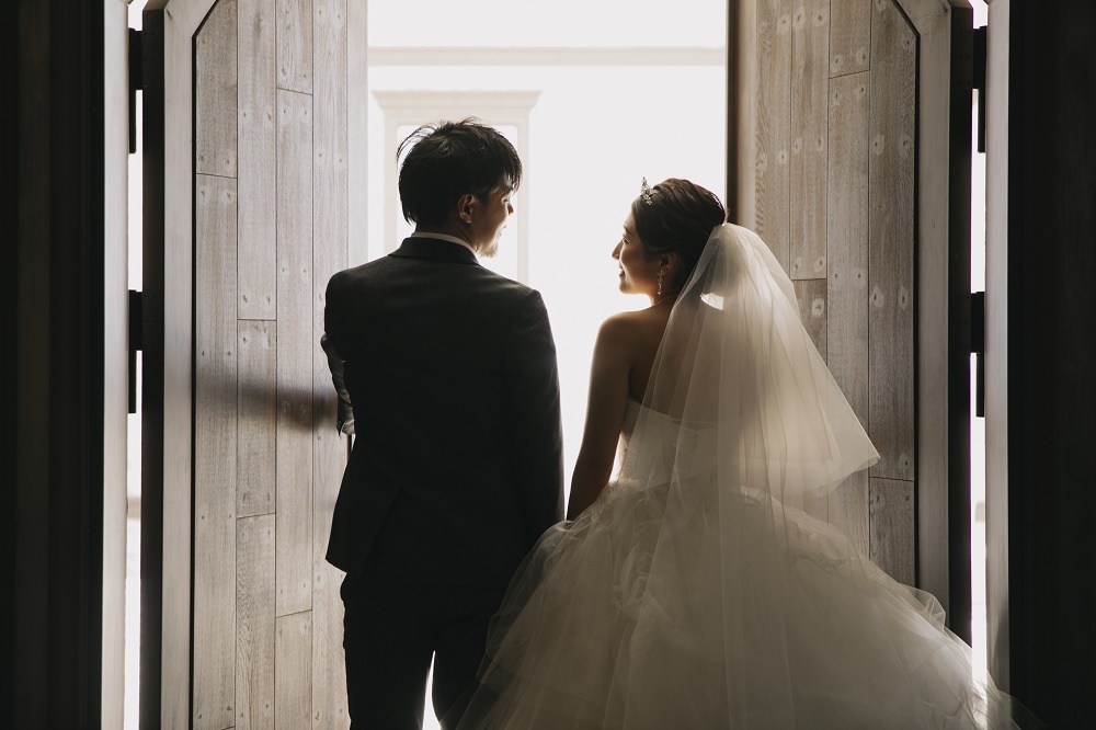 撮影中は自然な表情が作れないという方もいらっしゃいますが、扉を開ける・ふたりで見つめ合ってみるなどの行動があると、自然な表情になりやすいですよ♪