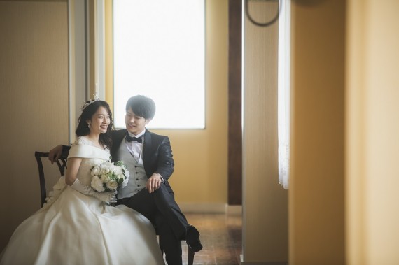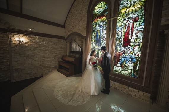 ステンドグラスは、どんな天候でも暗くならないように工夫がされていて、ウェディングドレスがとっても綺麗に映えます。