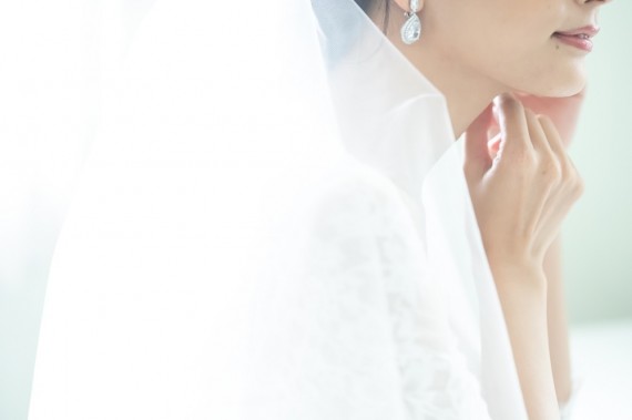 ベールをおろし身支度の仕上げをする瞬間は、照れくさい気持ちやいままでの感謝の気持ち…たくさんの想いがあふれる瞬間です。