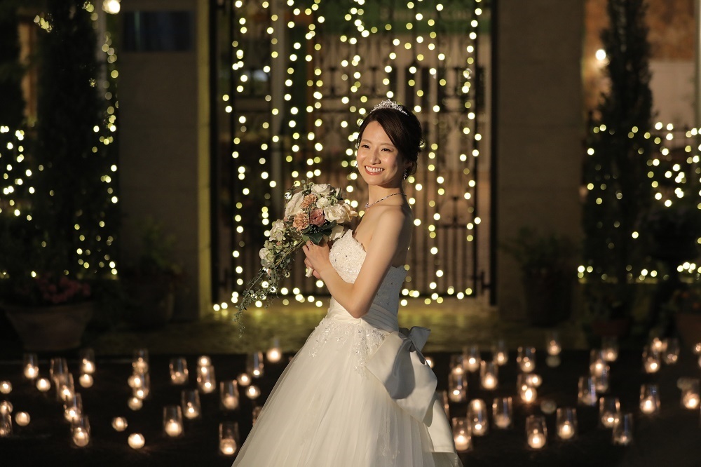 キャンドルを並べて、イルミネーションもキラキラな中でのフォトウエディングです!