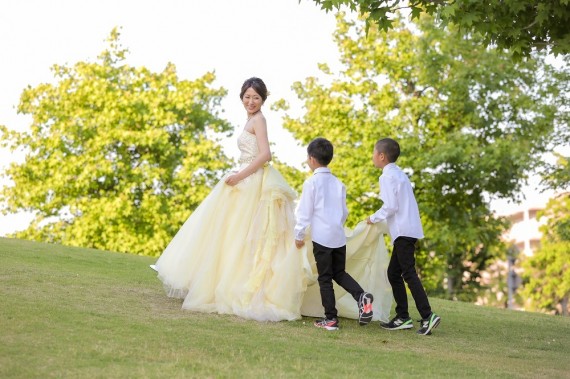 お兄ちゃん二人がご新婦様のドレスのトレーンを持ってお手伝いする姿がとても微笑ましいですよね♡