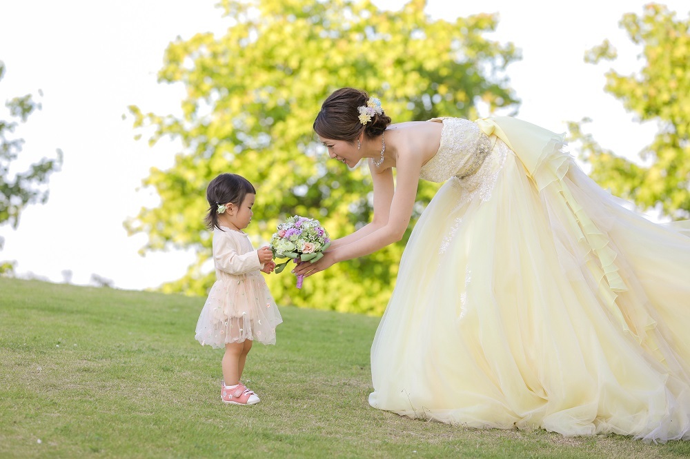 天使のような可愛い女の子から…ママにブーケをはいっ!と、お渡しするシーンがとってもCute♡