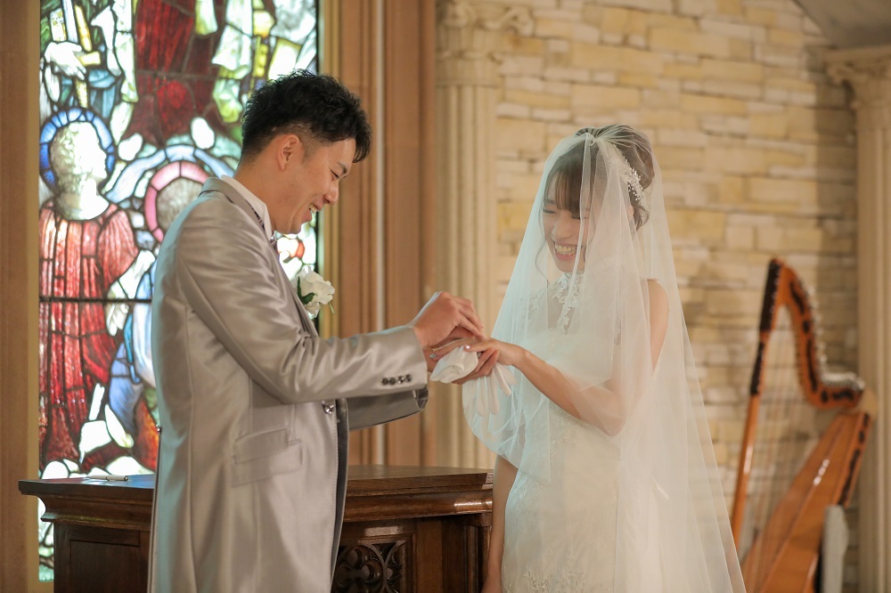 指輪の交換や、誓いのキス、お越しいただいた親御様に感謝の記念品贈呈など、一人一人にあわせた進行を作成します。