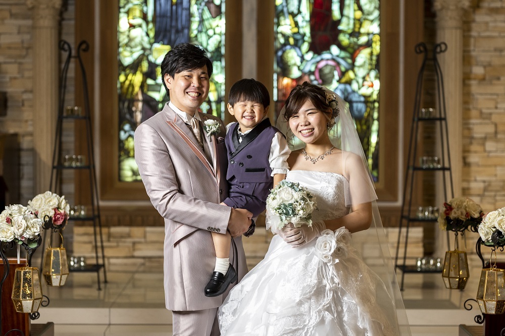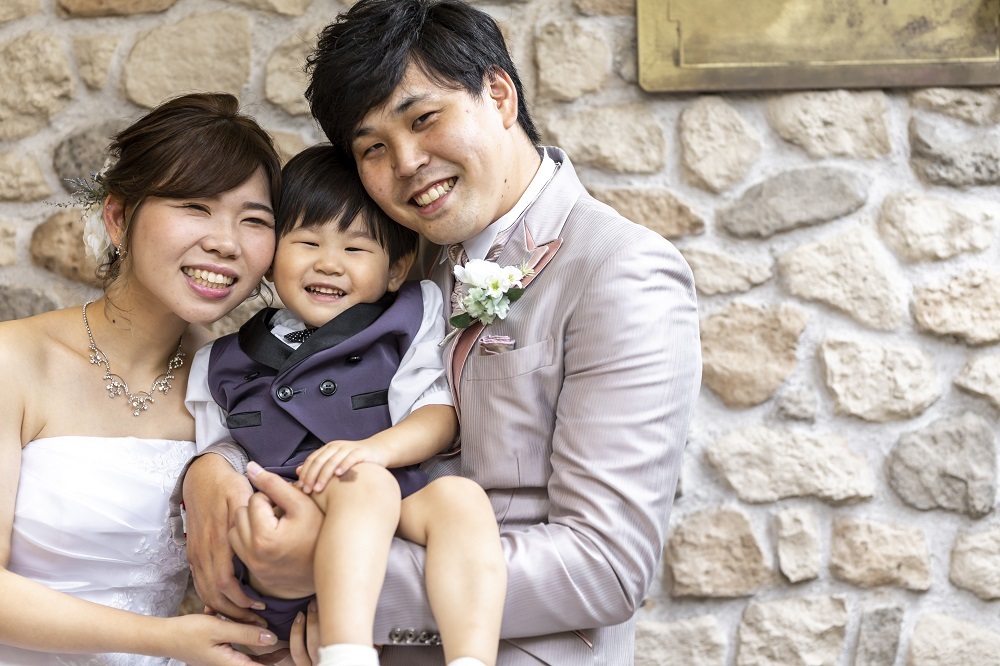 新郎新婦様とお子様のスリーショット☆彡 可愛い満面の笑みですね!