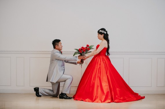 タキシード・ドレス姿でのプロポーズ風のお写真は、フォトウエディングならではのお写真になるかと思います♪